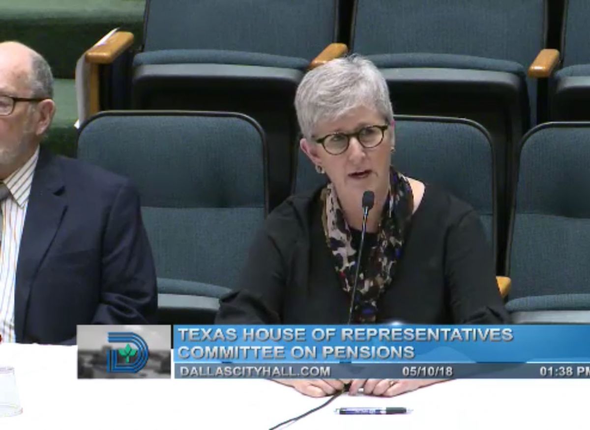 TCTA's Ann Fickel provided testimony at a meeting of the House Pensions Committee in Dallas on Thursday, May 10. The Dallas City Council Chambers were packed with retired teachers, several of whom also testified with their concerns about retirement and health insurance benefits. Committee members appear to be solid in their support for retaining a defined benefit structure for retirement benefits, but several expressed frustration with the ongoing cost increases associated with the pension plan and TRS-Care.